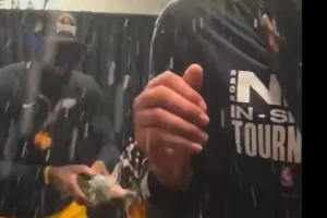 詹姆斯拿香槟狂喷浓眉🍾 浓眉:冷死了啦😂