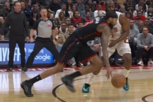 我的美髯!英格拉姆突破护球手扫到哈登面部 后者倒地但裁判没吹
