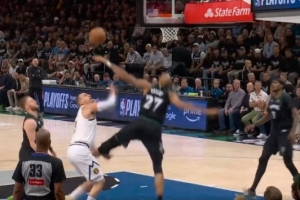 防守大闸!戈贝尔顶防约基奇 腾空而起送后者大帽