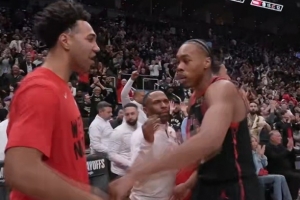 带着领先进第四节!巴恩斯第三节漂移压哨长两分命中&猛龙领先2分