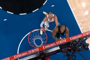 正面硬刚!戈贝尔接球强突约基奇 上篮打中还要加罚