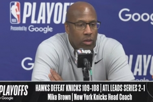 直播吧4月24日讯 尼克斯客场108-109再负老鹰,大比分1-2落后。赛后迈克·布朗接受了媒体采访,以下为采访全文。