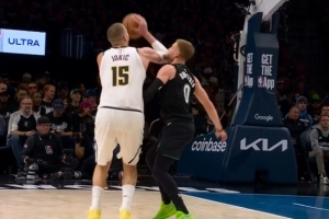 约基奇击中迪文岑佐被吹进攻犯规 掘金挑战成功改吹后者防守犯规