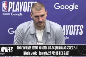直播吧4月24日讯 在今天结束的一场季后赛中,掘金以96-113不敌森林狼。赛后,掘金球星尼科拉·约基奇出席了新闻发布会。以下是完整版采访内容。