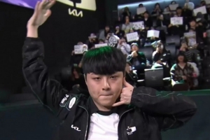 直播吧4月24日讯 在昨日结束的LCK常规赛的比赛中,DK以2-0横扫BRO,赛后DK中单ShowMaker模仿了热刺球员哈维西蒙斯“打电话”的庆祝动作。