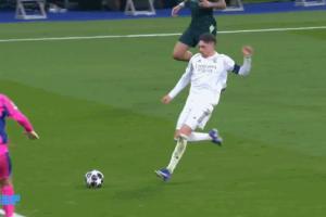 直播吧03月12日讯 欧冠1/8决赛首回合,皇马对阵曼城。第20分钟,巴尔韦德过掉多纳鲁马破空门,回放看,多纳鲁马出击后有一个收手动作,可能是担心自己在禁区外。