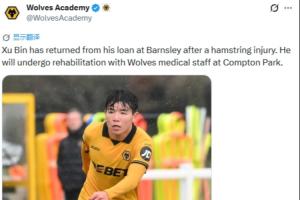 狼队公告:徐彬在巴恩斯利租借期间遭遇腿筋受伤,现已回归球队。他将在康普顿公园与狼队的医疗团队一起进行康复训练。