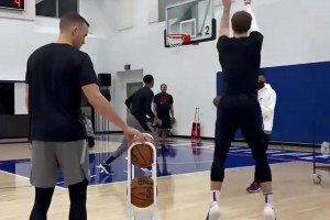 孙悦去洛杉矶找马布里玩 结果刚打上球就小腿韧带拉伤😅