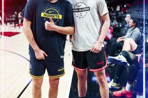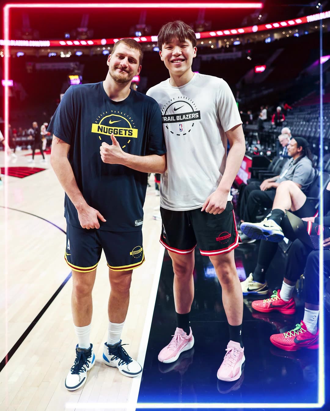 高出一截但没约壮~杨瀚森与约基奇开心聊天,合影留念😊