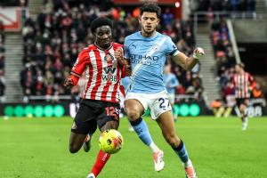 落后阿森纳4分!曼城0-0客平桑德兰 B席进球被吹萨维尼奥两失良机