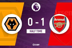 半场-阿森纳暂1-0狼队 萨卡破门打破15场进球荒赖斯送助攻