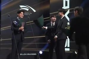 直播吧12月20日讯 Gumayusi在昨晚的LCK颁奖典礼中,获得“LCK年度ADC选手”奖项;Guma的前T1队友上台送上鲜花。