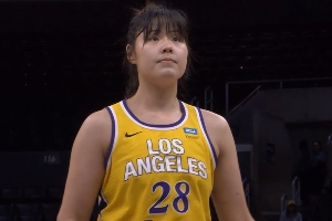 中国女篮国手李月汝今天在上半场就获得11分钟出场时间,并通过自己的不断拼抢,在半场结束时就拿到5个前场篮板,同时还收获4分(3投1中,2罚2中)。不过在下半场比赛中,她仅在第四节榜眼秀布林克犯满离场后,才被派上场打了两分钟。