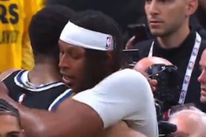 赛后,字母哥和步行者的队员们拥抱致意,但突然就推搡了起来。