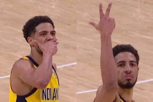 😤霸气!哈利伯顿面对布伦森超远三分打进 盗用后者庆祝方式