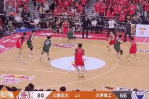 比赛最后时刻,上交吴泽昊在三人补防下,中距离飘逸后仰,完成压哨绝杀!