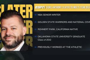 直播吧07月17日讯 今日早些时候,ESPN官宣签下名记Anthony Slater,后者将从媒体TA跳槽到ESPN联手Shams。