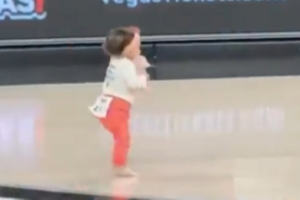 比赛中场间歇时举办了婴儿爬行比赛,其中一个小宝宝爬着爬着突然“觉醒”,直接站立起来完成了人生第一次行走!这一幕也逗得现场众人大笑。
