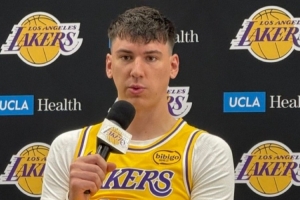 直播吧9月30日讯 湖人新赛季媒体日,新援拉拉维亚出席接受采访。