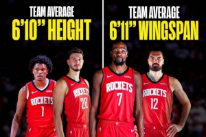 (注:1、经吧友提醒,Clutchpoints原文数据信息有偏差。2、Clutchpoints原文内容为:“火箭全队平均身高2.08米、平均臂展为2米11。”经查证该数据不正确。3、已根据官方数据信息调整原文内容)