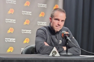 直播吧11月5日讯 NBA常规赛,太阳107-118不敌勇士。赛后,太阳主教练乔丹·奥特接受了采访。