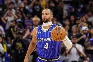 直播吧1月4日讯 据雅虎体育报道,联盟规定魔术后卫萨格斯在比赛开始时必须将发带戴在头上,而不是带到脖子上。