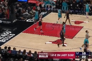 一波小高潮!许尔特借掩护突破上篮打进 公牛12-2打停黄蜂