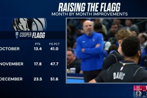 弗拉格本赛季数据逐月稳增:场均分从13.4分→17.8分→23.5分