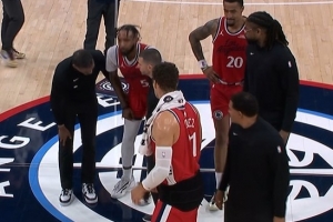 打得是真好!小琼斯遭逼抢腿部受伤被两人架出场 目前9中8