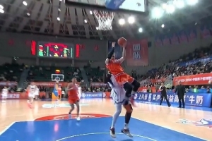 杨阿力抢断反击上篮被哈里斯从身后撞倒 哈里斯被吹违体犯规