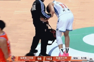 希望没事!齐麟突破抛投落地时崴脚 被队友搀扶下场休息