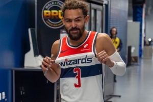 全新的开始!特雷·杨身穿3号球衣现身华盛顿奇才主场