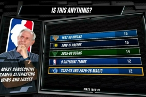 NBA历史连续输赢交替场数榜:97-98尼克斯15场第1 本赛季魔术第4