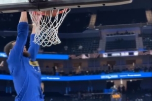 今日份扣篮请查收~小吧现场直击>库里赛前惯例式自抛自扣