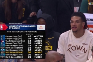 本季新秀单场得分榜:弗拉格&克尼佩尔占三席 理查德唯一二轮秀