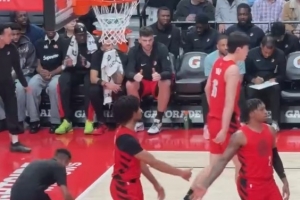 老大哥的认可!杨瀚森造亚当斯犯规 克林根场下对小杨双手竖拇指