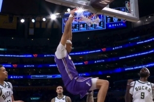 丝滑!詹姆斯转身过掉防守送抛传 海斯起飞大力灌篮