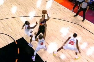 古典!布克单打布伦森 撤步中距离跳投打进还造成后者犯规