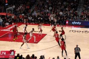 一板一助到手!杨瀚森拿到前场板 单手一拨助攻乐福三分命中!