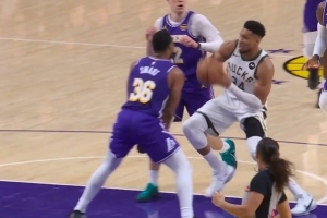字母哥反击撞倒斯玛特上篮2+1 湖人挑战成功&变字母哥进攻犯规