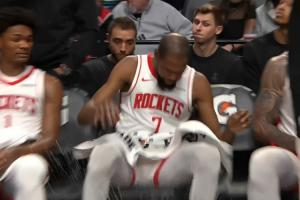 很生气😡小贾送三分犯规 暂停回放杜兰特在替补席上怒砸水瓶