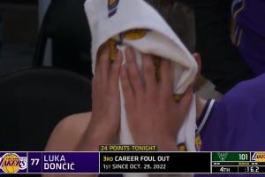 很沮丧啊!东契奇湖人生涯首次犯满离场 在替补席摔护腕&毛巾捂脸