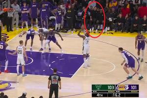 小波特第三罚不中 雷迪克看到后跳起挥手示意詹姆斯赶紧进攻
