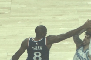 按在球上!三球突破抛投造成邓恩犯规 快船挑战成功