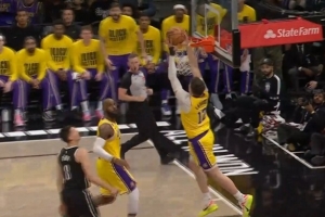 行云流水!詹姆斯速推反击送抛传 拉拉维亚起飞空接双手暴扣
