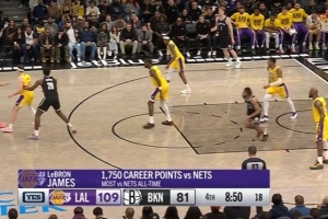 历久弥坚!詹姆斯生涯对阵篮网共得到1750分史上最多