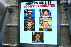 直播吧2月26日讯 今天,ESPN记者Brian Windhorst在节目中晒出了自己心目中本赛季MVP前五的人选。