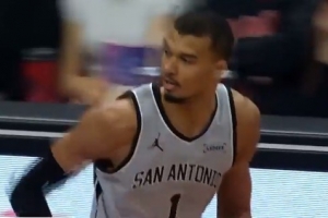关键!文班亚马接球不调整&底角略带漂移三分命中 此前三分4中0