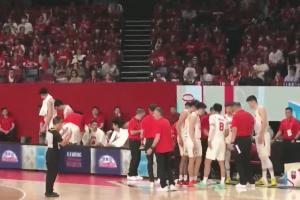 相互加油!暂停期间中国男篮队员相互提醒加油:篮板球!篮板球!