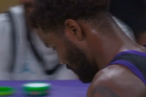 这球烫手?艾顿篮板再现黄油手出界 随即被换下